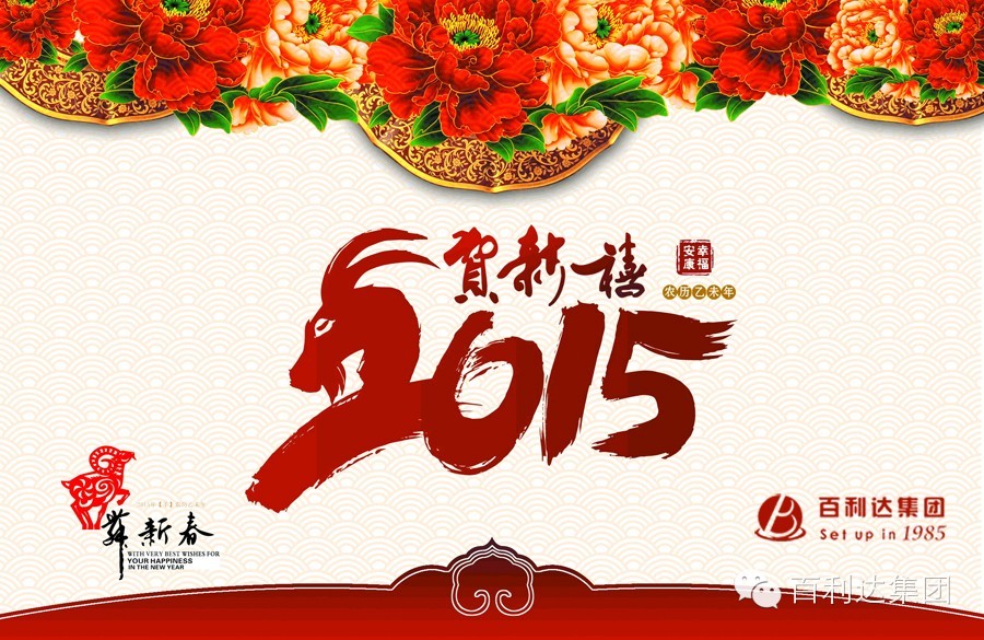 大家好!在羊年新春佳節即將來臨之際,謹代表百利達集團向廣大客戶、朋友們、員工們以及您們家屬致以親切的節日問候和誠摯的祝福!特別向此刻仍堅守在工作崗位上的員工表示由衷的感謝和節日問候! 結合本集團實際情況,將于2015年2月17日至25日放假調休,2015年2月26日(大年初八)正常營業。 中國古人講“三羊開泰”,這意味著美好的一年即將開始。祝大家羊年吉祥,萬事如意! 百利達集團—趙龍民